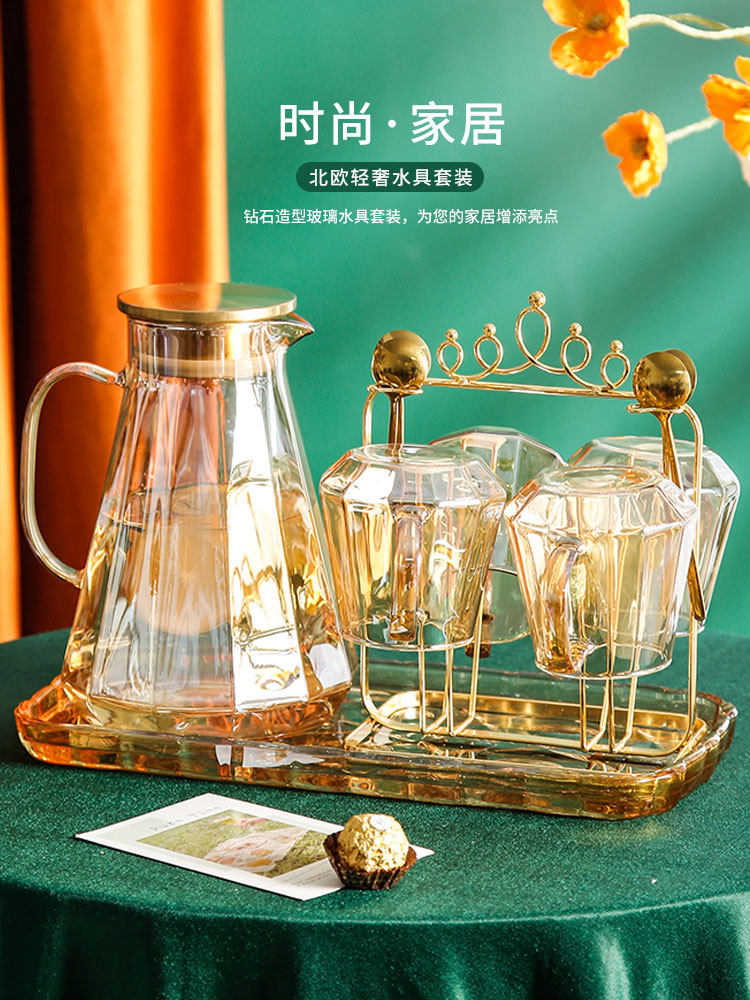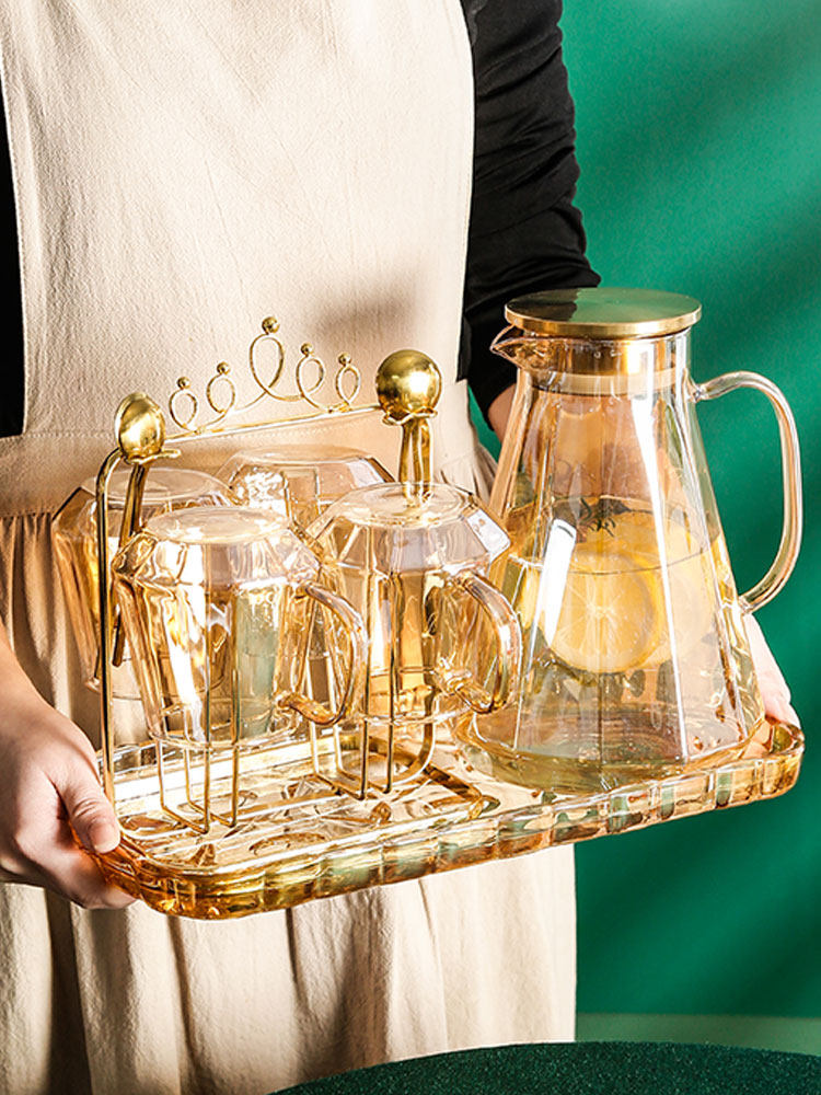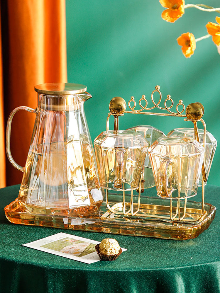 Diamond Crown Amber Water Appliance (1 pot) Diamond Crown Amber Water Appliance (4 cups + cup holder) Diamond Crown Amber Water Appliance (1 pot + 4 cups + tow plate + spoon) Diamond Crown Amber Water Appliance (1 pot + 4 cups + cup holder + tow plate + spoon) Lanling Crown water appliance (4 cups + cup holder) Lanling Crown water appliance (1 pot + 4 cups + tow tray + spoon) Lanling Crown water tool (1 pot + 4 cups + cup holder + tow tray + spoon) Hanging gray water utensils (1 pot ) Draped gray water utensils (1 pot 2 cups) Ribbed gray water utensils (6 cups + cup holder) Draped grey water utensils (1 pot 6 cups + black tray) Draped grey water utensils (1 pot 6 cups + black tray + cup holder)