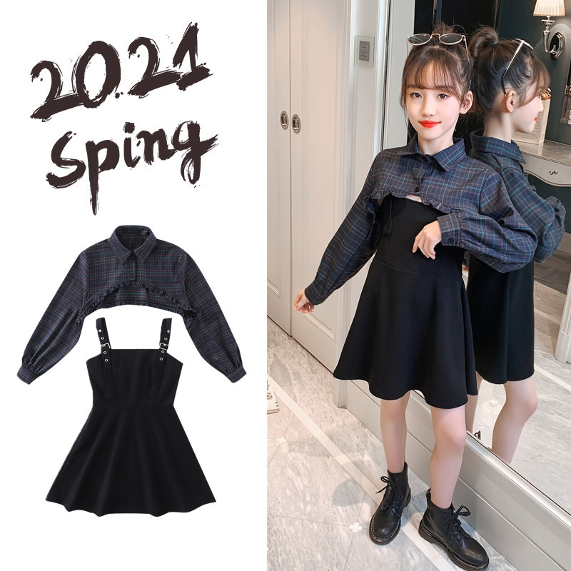 Child Holding Baby Bag Dress 2021 Spring New Children's Clothing Girl Spring Clothing Han Yo Pie Dresses Woman Great Boy Black Vest Dress