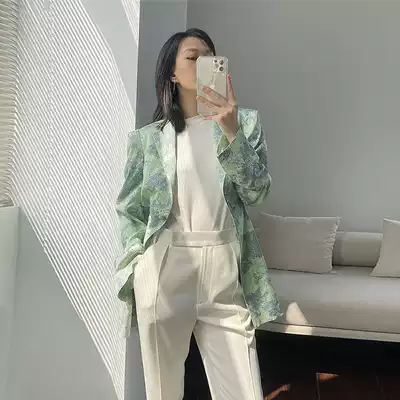 SOULKISS green field exclusive jacquard_Hollow cut cut design sense thin small blazer women Summer