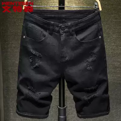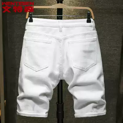 White ripped jeans men's loose casual 2021 summer new five-point pants men's shorts trend five-point pants