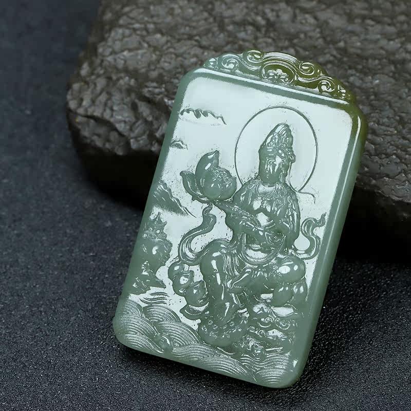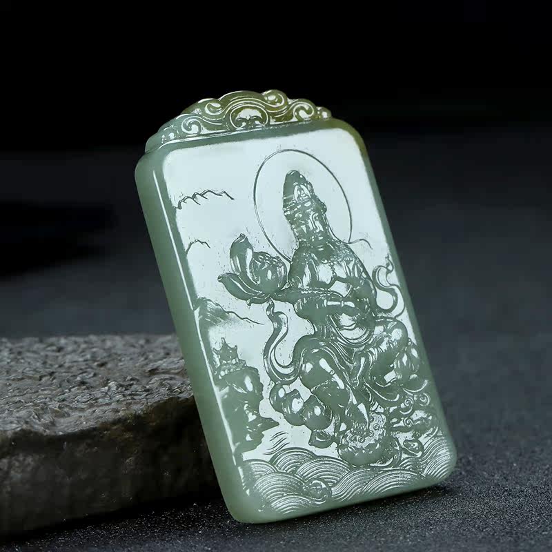 Xinjiang Hetian jade and blue Guanyin Bodhisattva pendant men's pendant natural jade necklace jade brand 49 95g