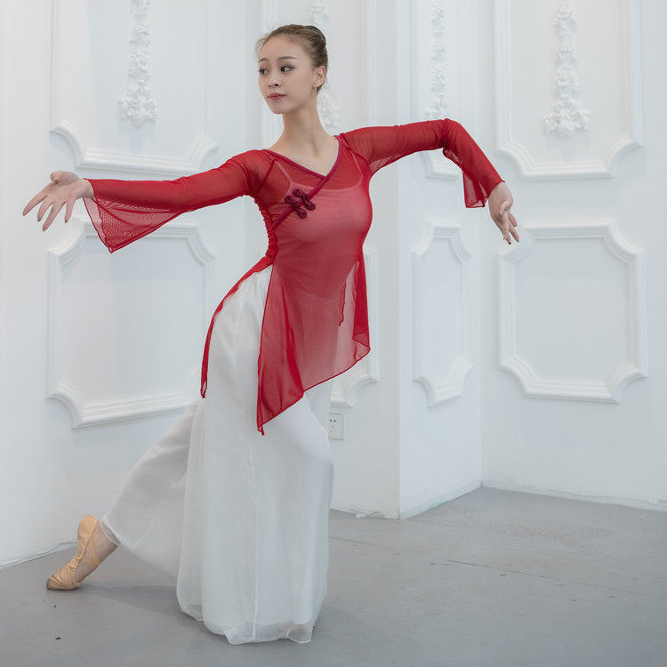 Classical dance body rhyme gauze short section practice clothing performance jacket female summer elegant blouse art test national dance