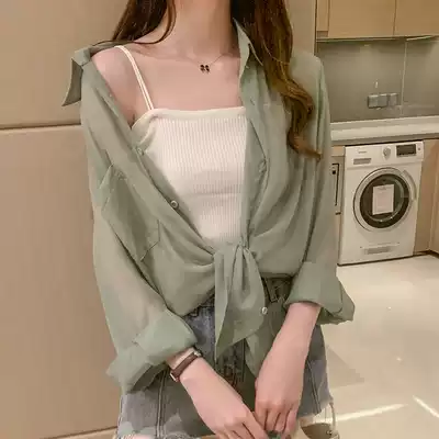 Tide brand Ice Silk sunscreen clothing women long sleeve 2021 new summer cardigan outside Cardigan chiffon shirt thin sunscreen clothing