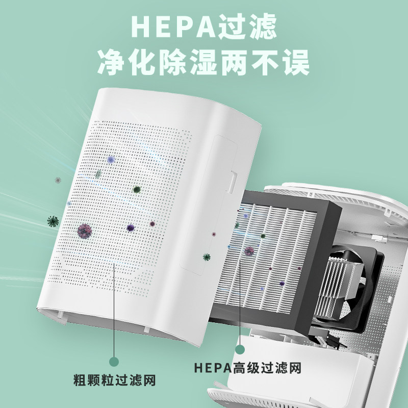 Dehumidification and purification All with 2 hepa filters Dehumidification and purification All with hepa filters
