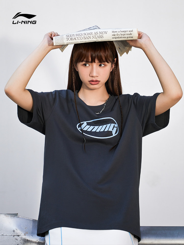 China Li Ning short-sleeved t-shirt men and women lovers summer new sports pure cotton half-sleeve national tide loose top ahsq412