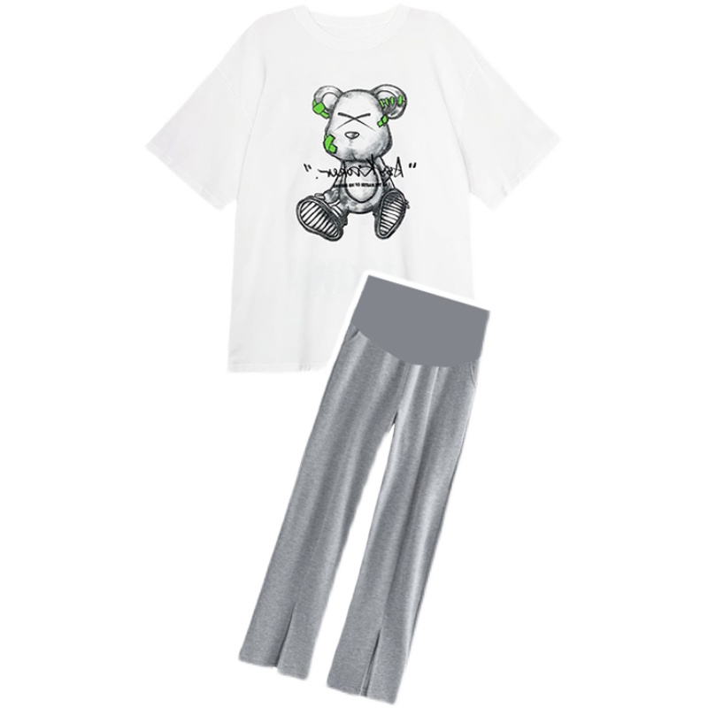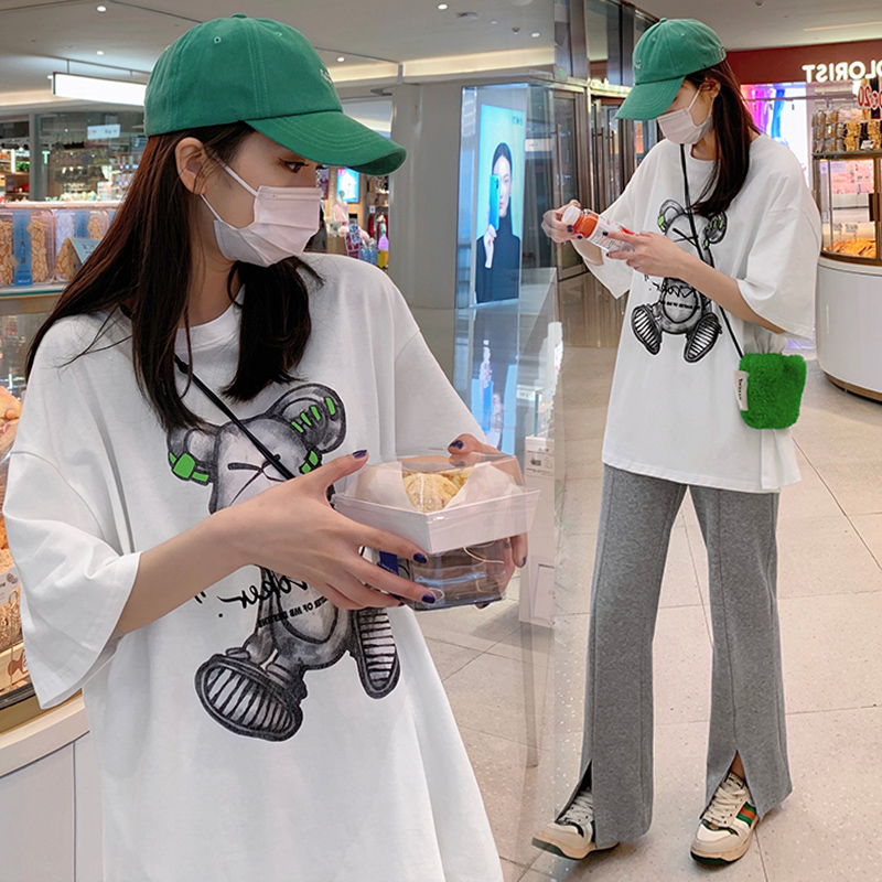 Pregnancy Woman Dress Summer Suit Pure Cotton Blouse T-Shirt Loose Large Size Code Net Red Tide Mom Out Summer Summer Two Sets