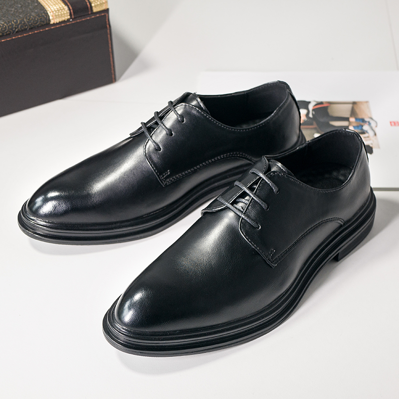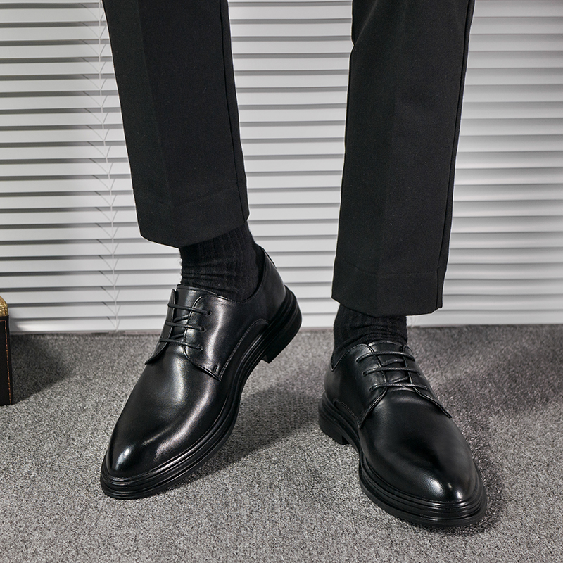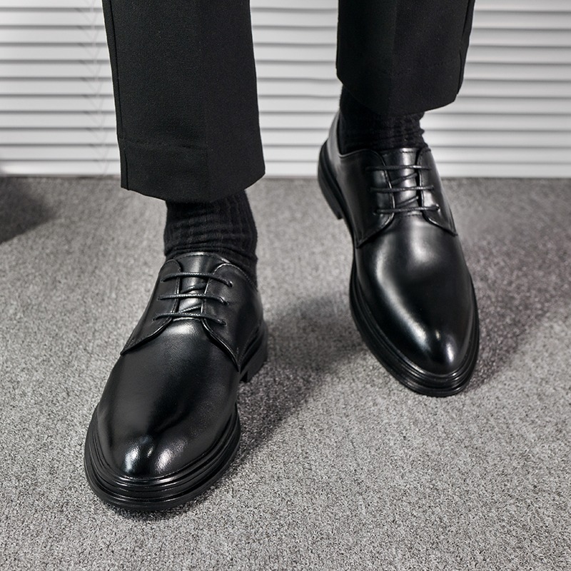Summer leather breathable leather shoes men's Korean version of the British black casual business dress pointy toe inner increase tide shoes