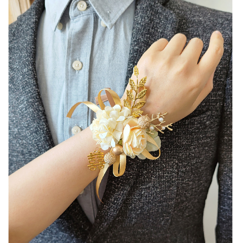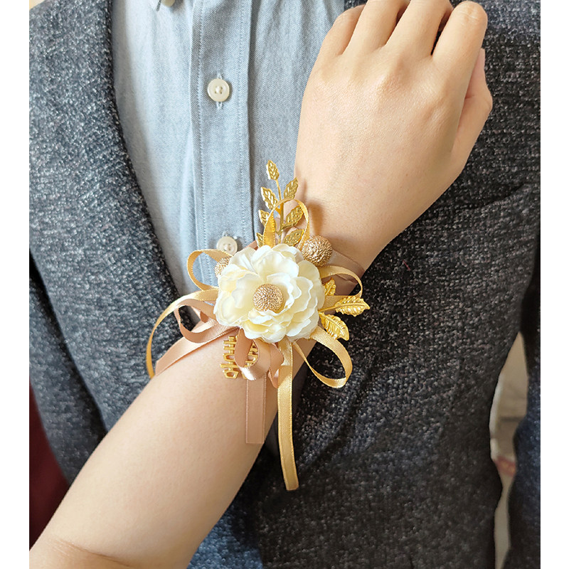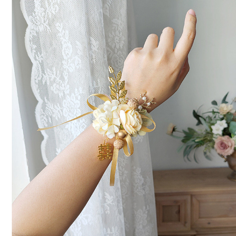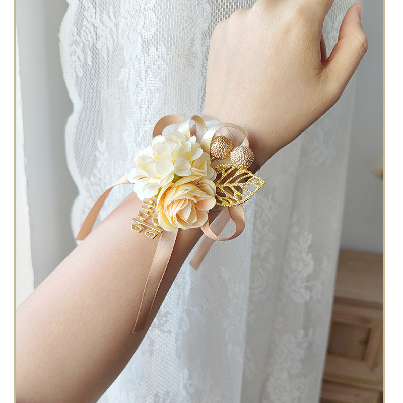 Champagne Emulation Bride Wrist Flower Bridesmaid Sisters Group Hands Flowers Dancing Knot Wedding Celebration Supplies Han Style Little Fresh