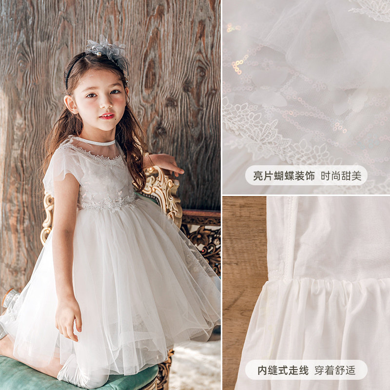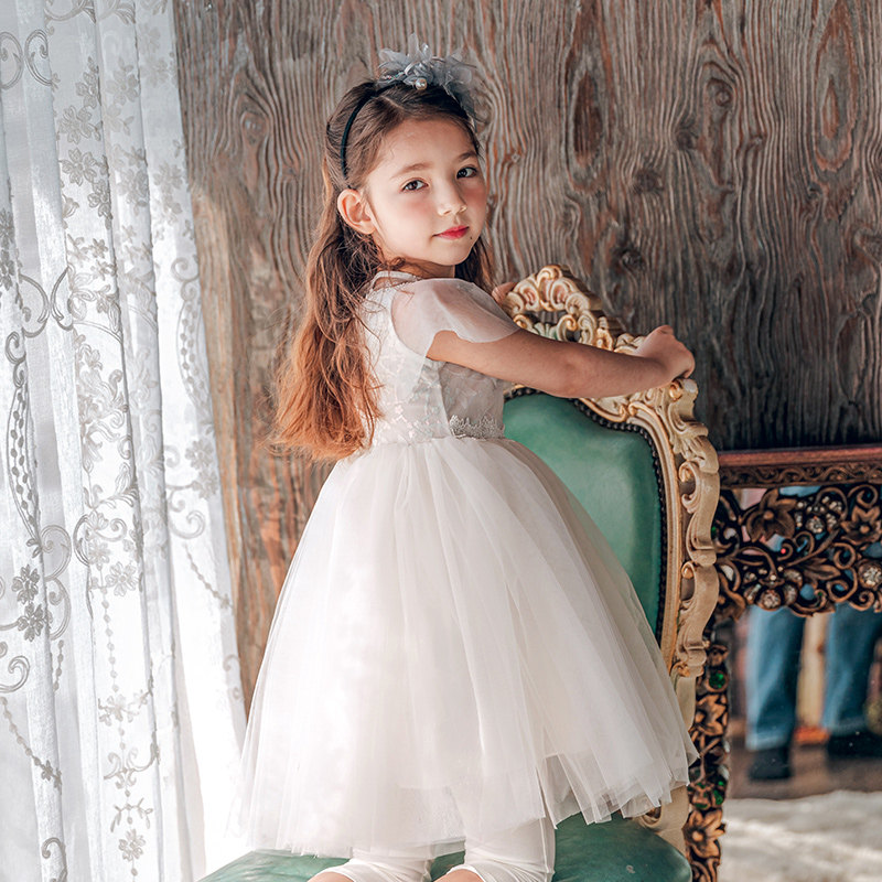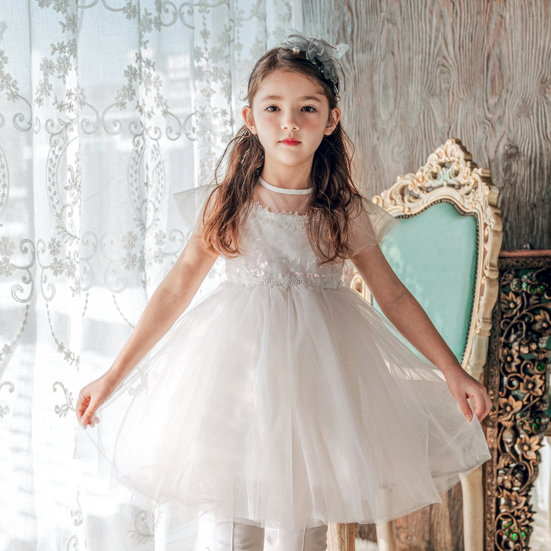 Boat mouse girl white dress summer dress Western style 2021 new gauze skirt children's skirt Korean version of the children's princess skirt