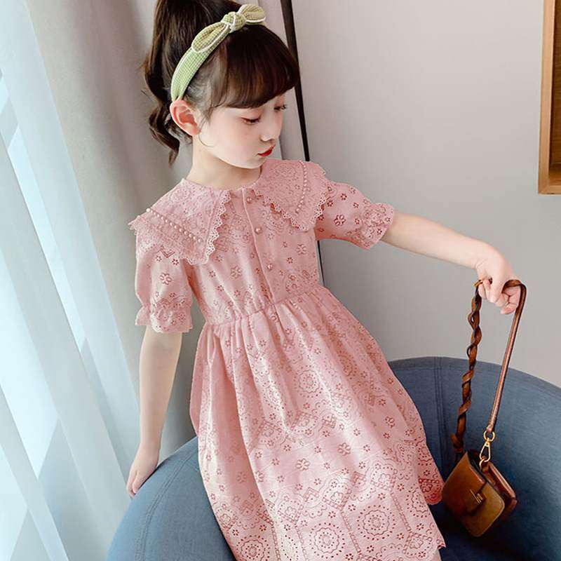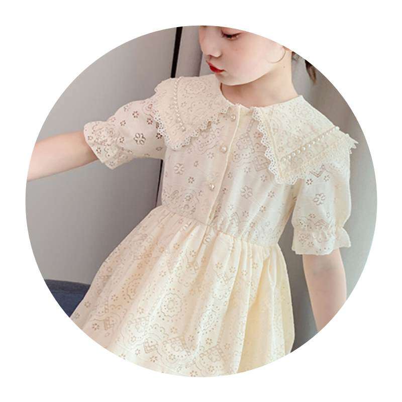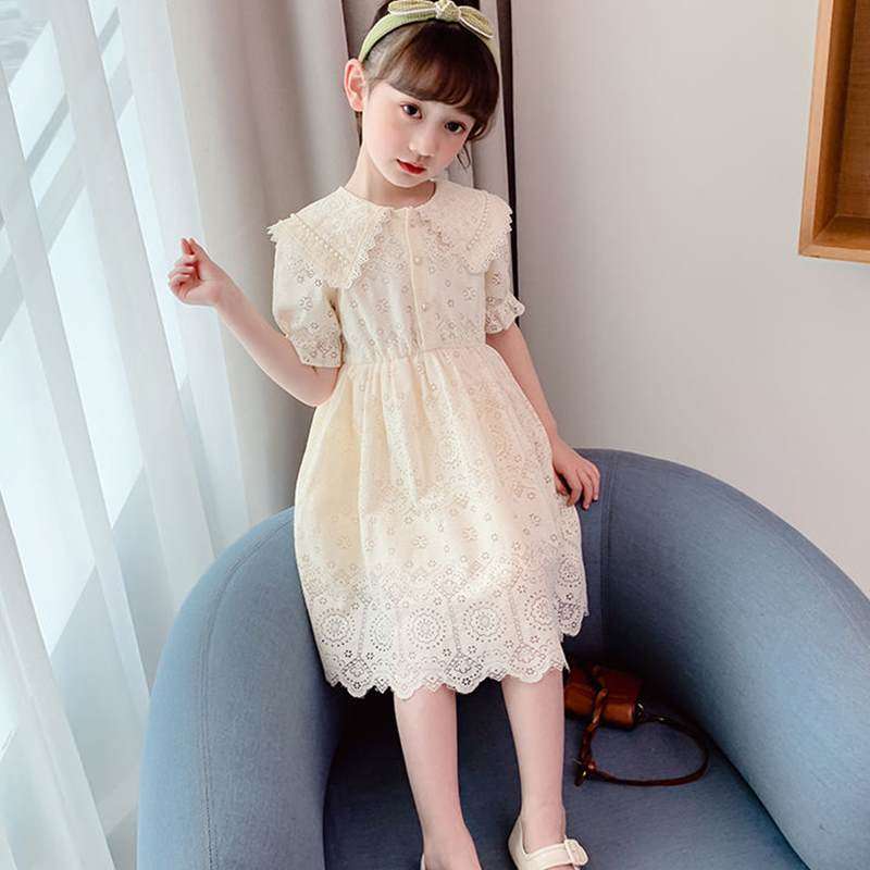 Korean girls dress 2021 new summer beige children's lace Western style fashion little girl princess dress