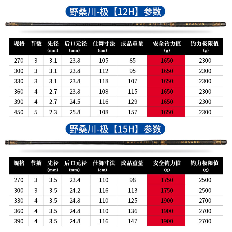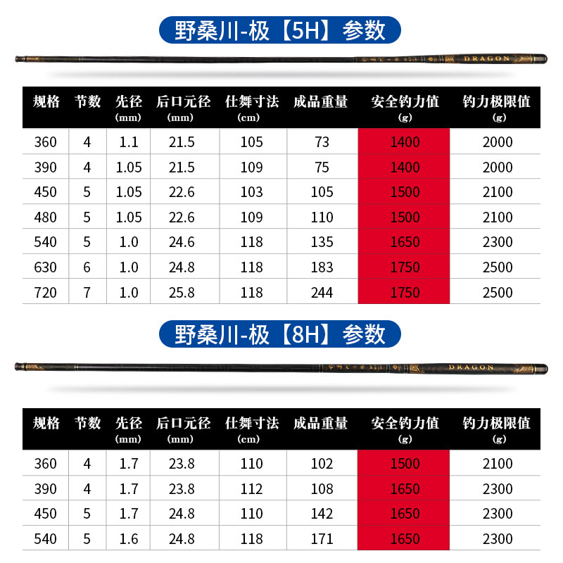 Nosangchuan-Pole 5H 3 6m Nosangchuan-Pole 5H 3 9m Nosangchuan-Pole 5H 4 5m Nosangchuan-Pole 5H 4 8m