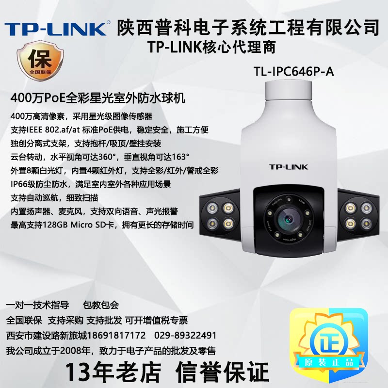 TP-LINK4 million TL-IPC 646-A full color cruise starlight 360 degree outdoor waterproof cable ball machine