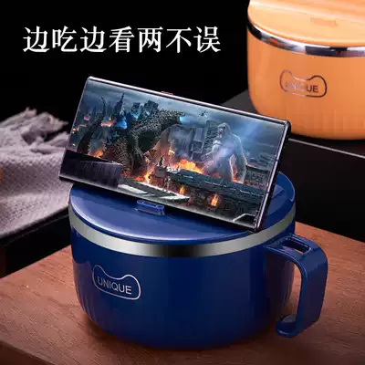 German 304 stainless steel instant noodles bowl artifact Student dormitory with drain cover large capacity instant noodles eating box