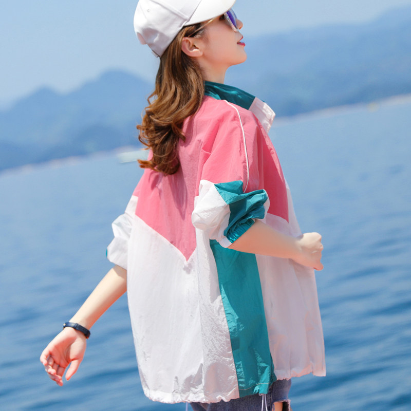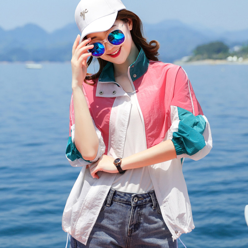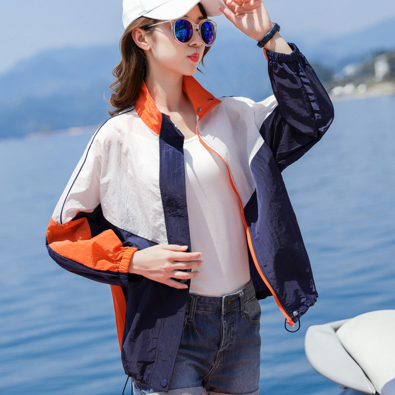 Sun protection clothing jacket women's summer Western style thin section casual contrast color electric car anti-UV breathable cardigan outside wear tide