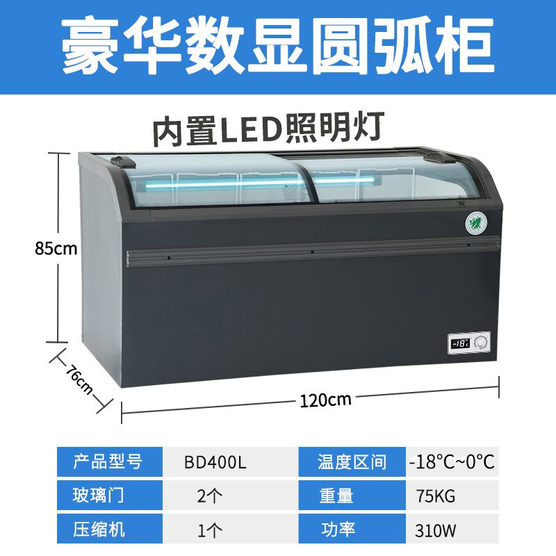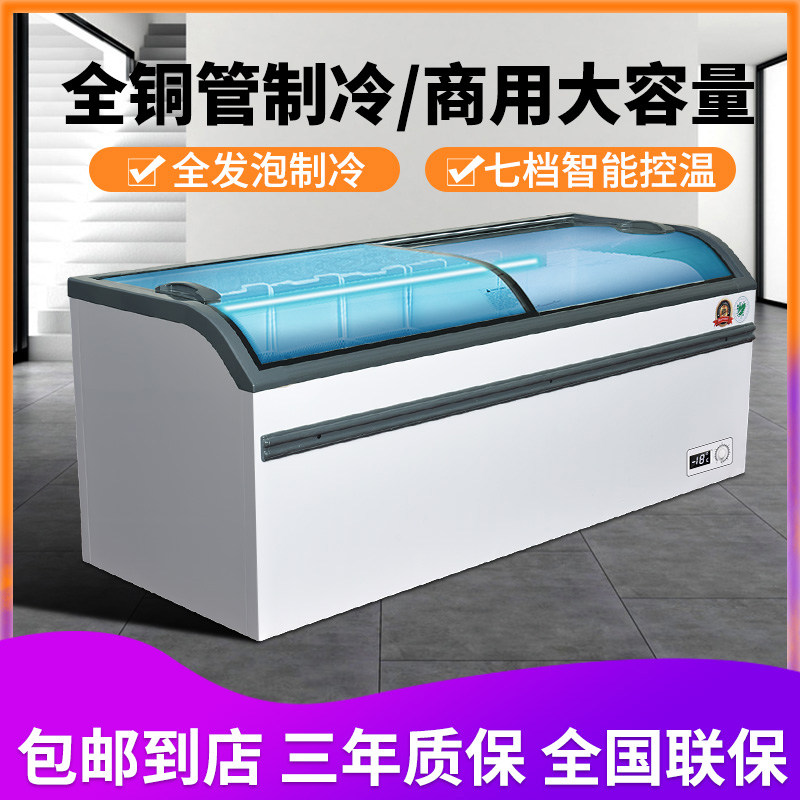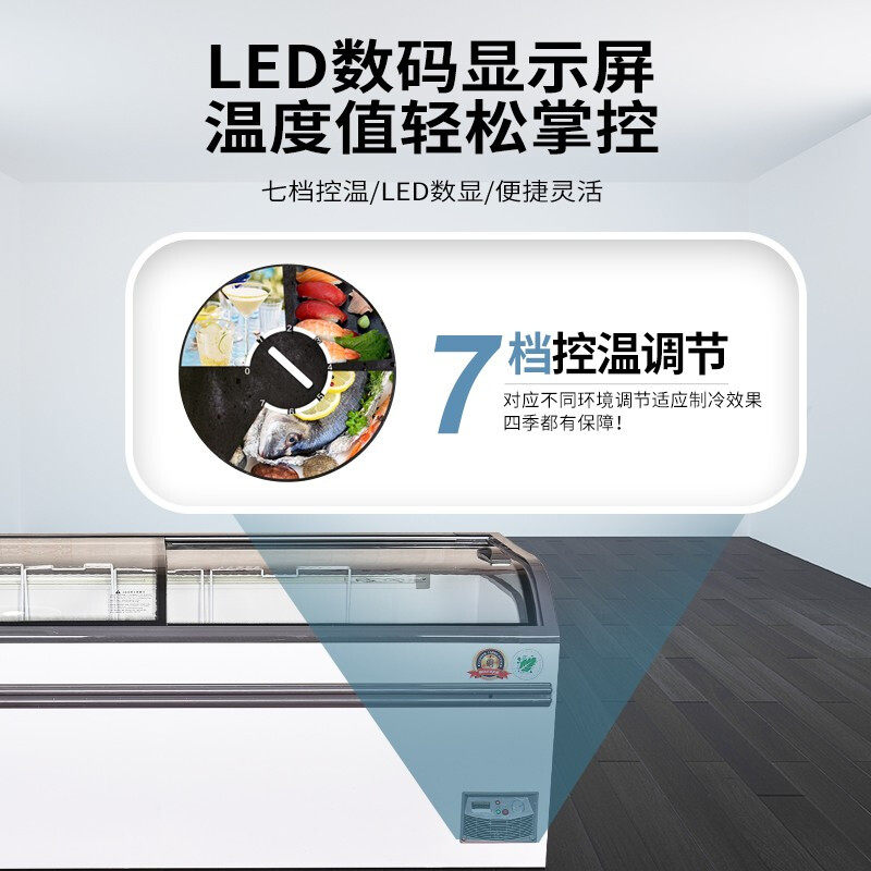 Freezer commercial large-capacity fresh-keeping frozen smart arc glass with light horizontal island cabinet supermarket display cabinet refrigerator