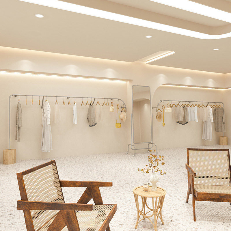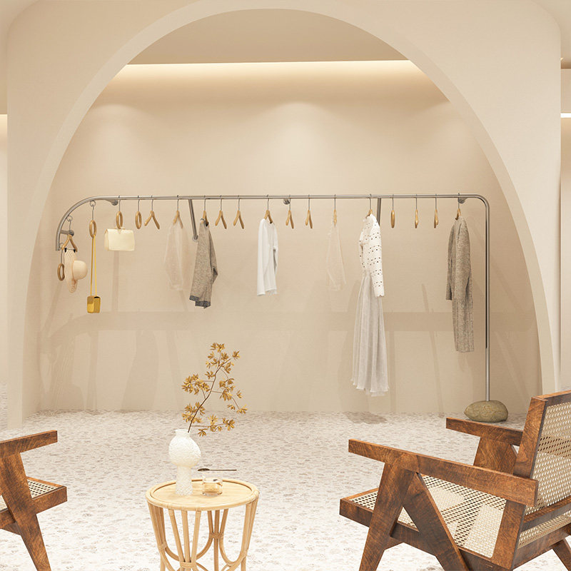 Clothing store display stand Women's clothing display stand Floor-standing stainless steel silver metal shelf wall clothes hanging clothes rod