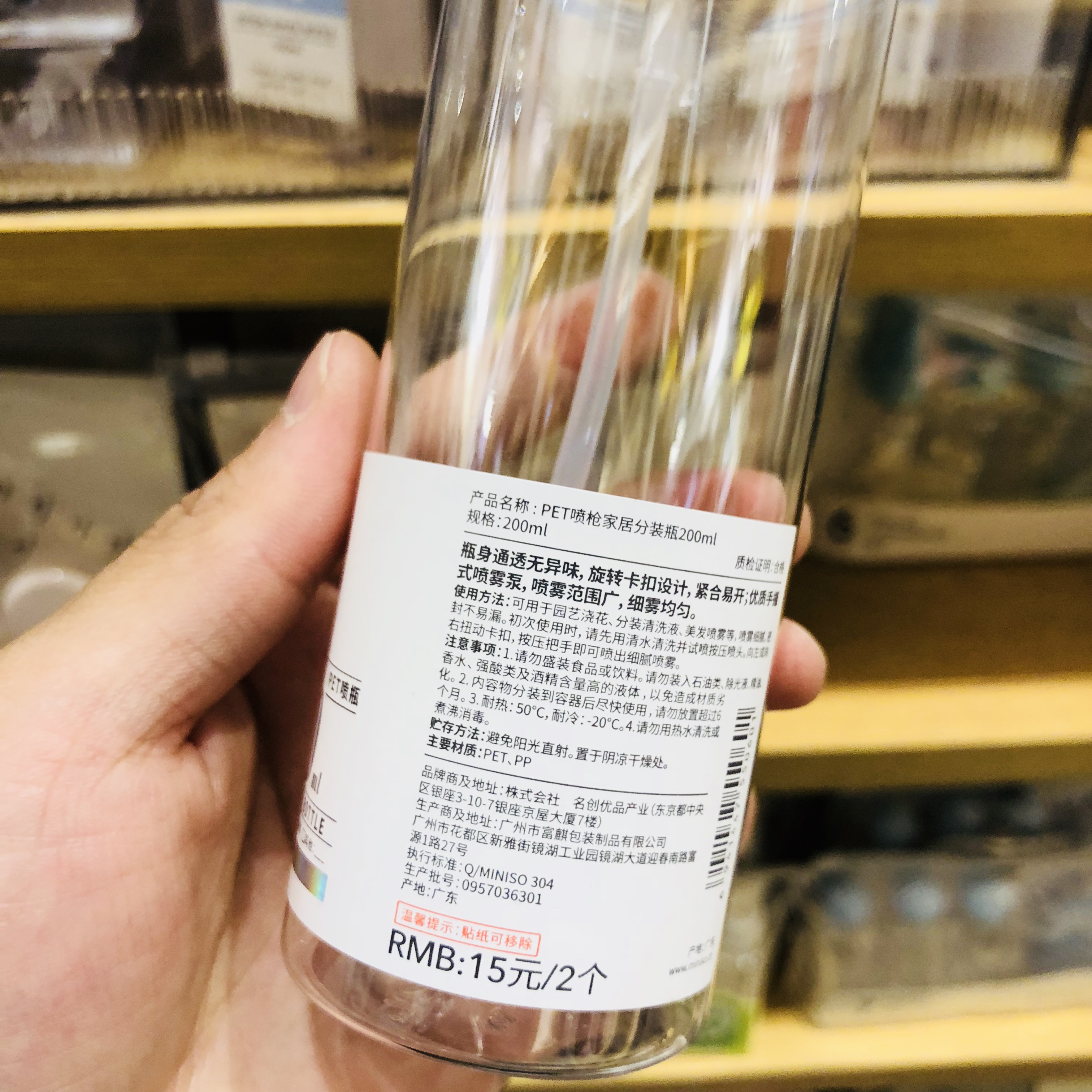 miniso famous product PETG emulsion type replacement bottle alcohol spray bottle spray gun home sub-package squeeze bottle