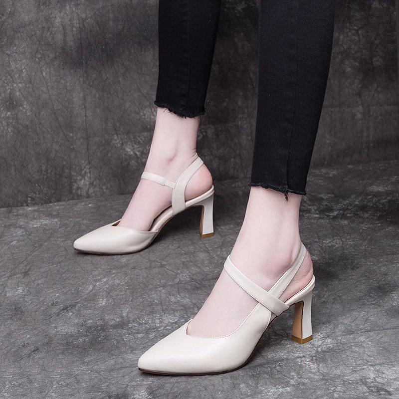 High-heeled toe sandals 2022 new women's leather summer women's shoes temperament explosion style thick heel back empty shoes women