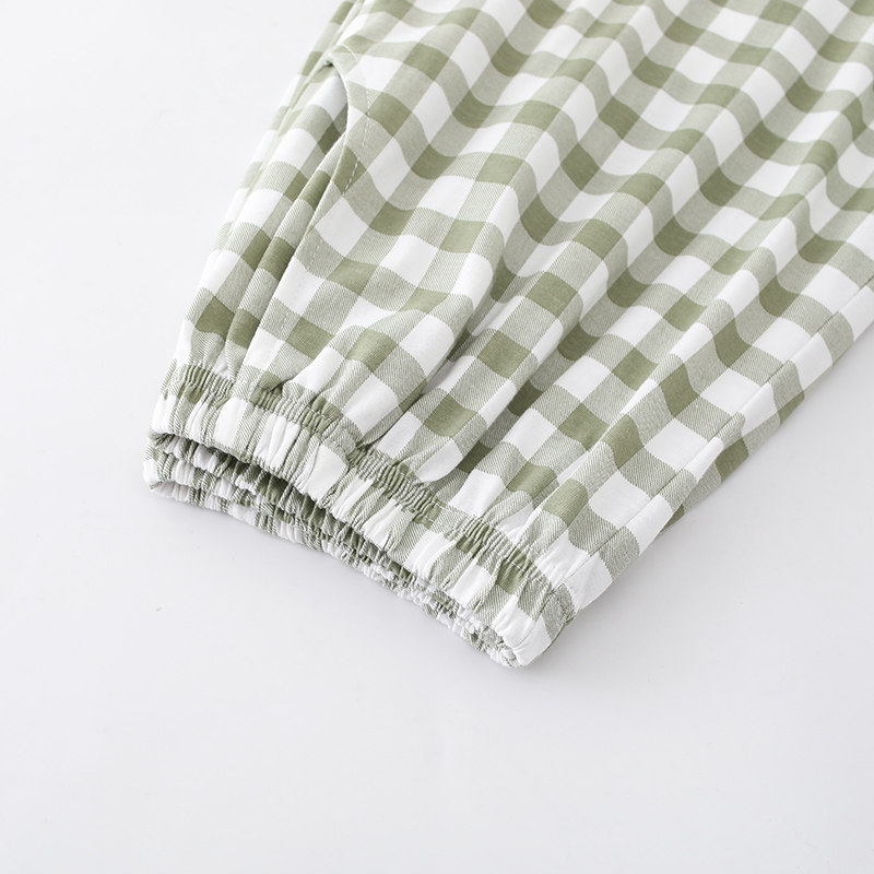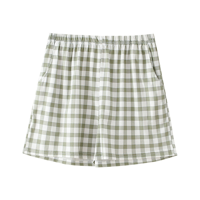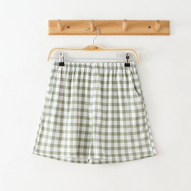 Pajama pants women's summer shorts cotton thin section loose casual can be worn outside Japanese plaid elastic pants green home pants