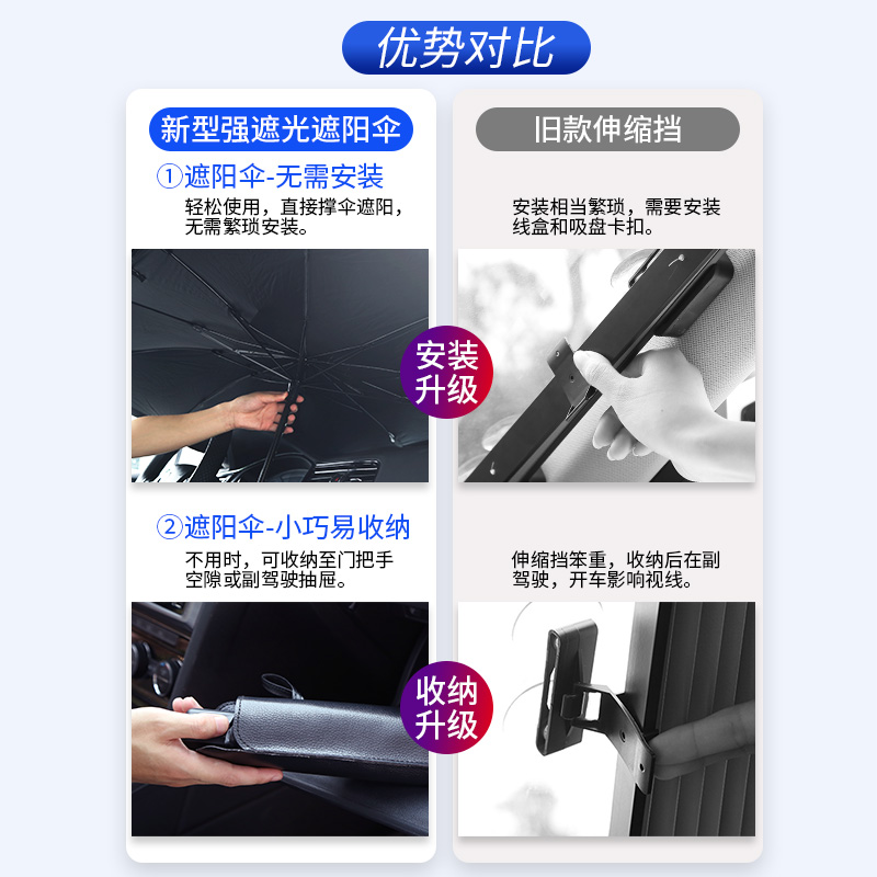(Upgraded) For sedans (laser single front gear) Small parasol - suitable for compact hatchbacks (leather storage bag) Large parasol - ★ ★ suitable for SUV sedans (leather storage bag) Upgrade thickened small ★ compact hatchback (leather storage bag + suction cup side gear pair) Upgrade thickened large + suitable for SUV sedan (leather storage bag + suction cup side gear pair) Upgrade thickened large size + suitable for SUV sedan (leather storage bag + two pairs of suction cup side gear) Collection and purchase ★ priority delivery