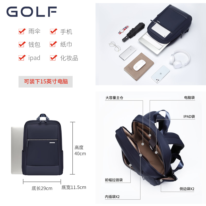 golf new woman double shoulder bag with 15 inch computer bag student light splash water bag large capacity bag