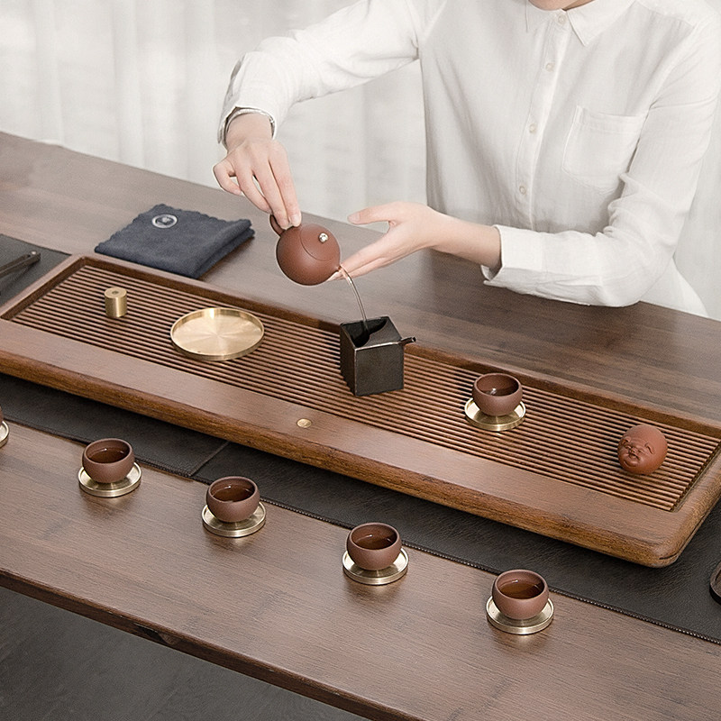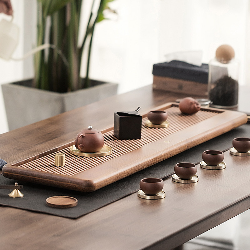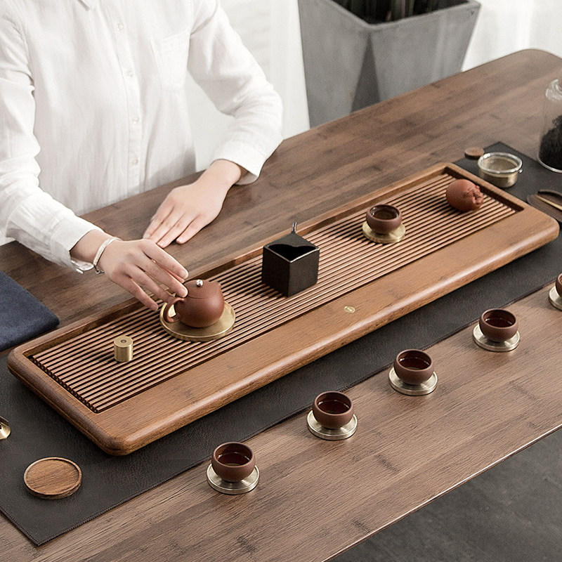 Heavy Wood Tea Tray Home Pull Groove Day Style Brief Modern Rectangular Tea Sea Tea Table Whole Merit Tea Channel Drainage Type