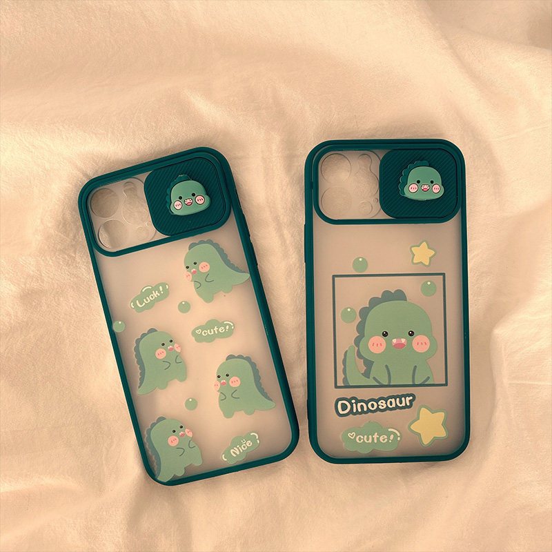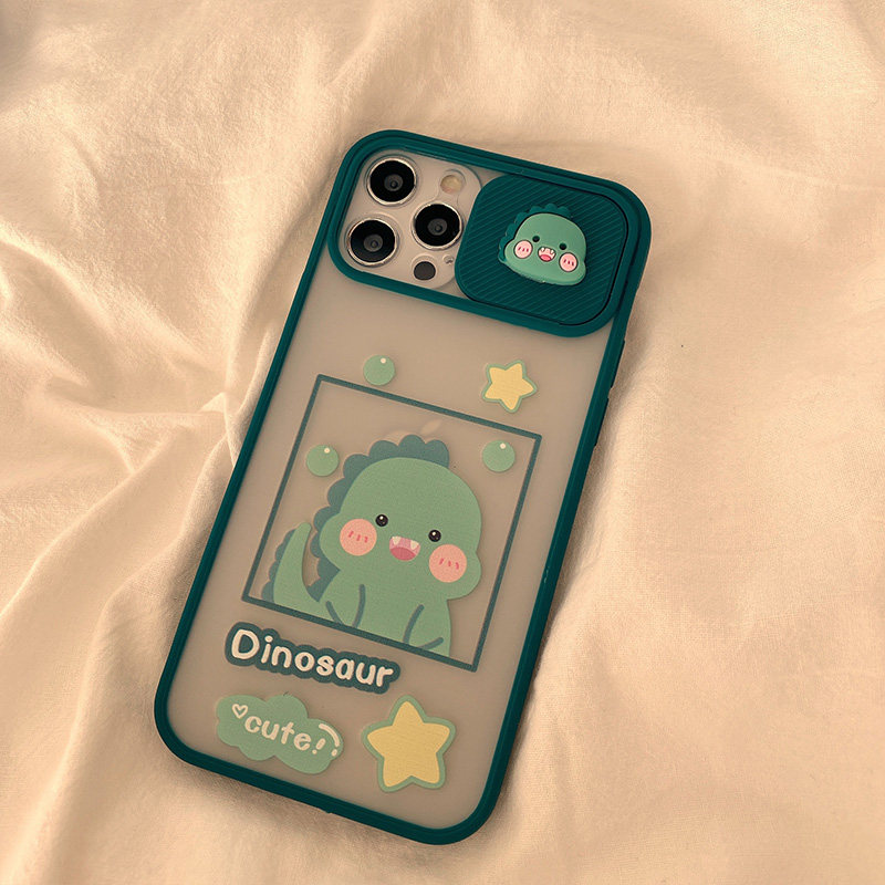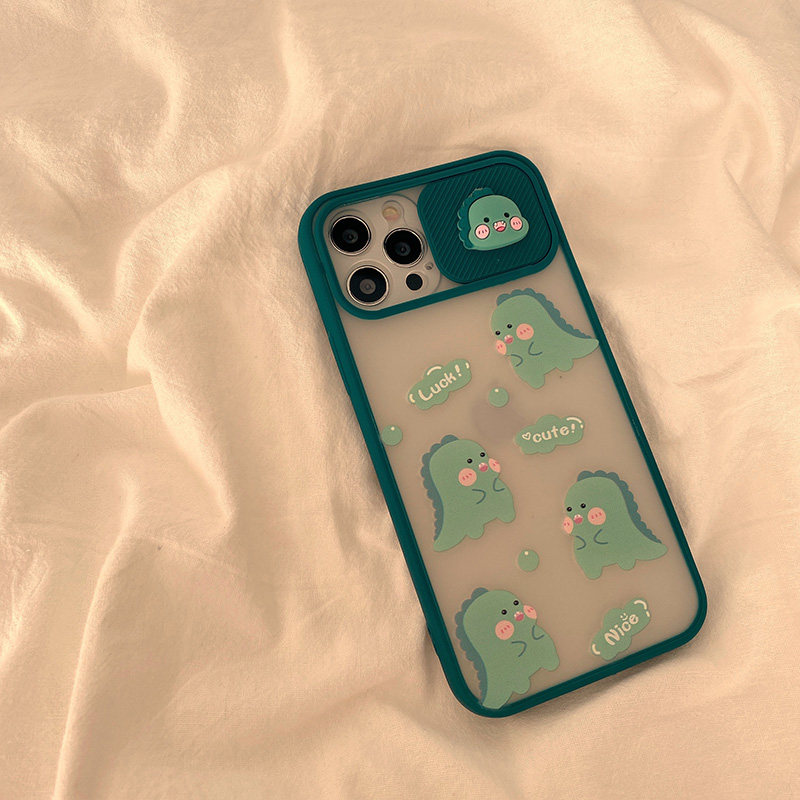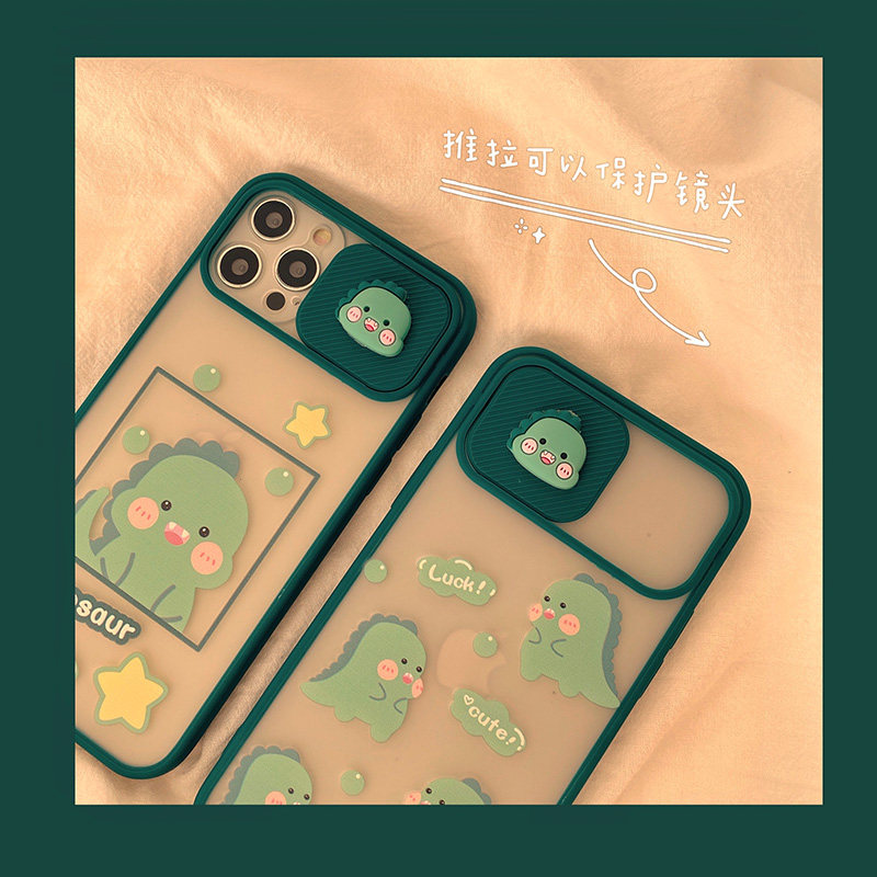 ins wind cute cartoon small dinosaur applicable apple 13 12ProMax push-pull lens mobile phone protective shell iphone11 X XS XR silicone 8plus anti-fall