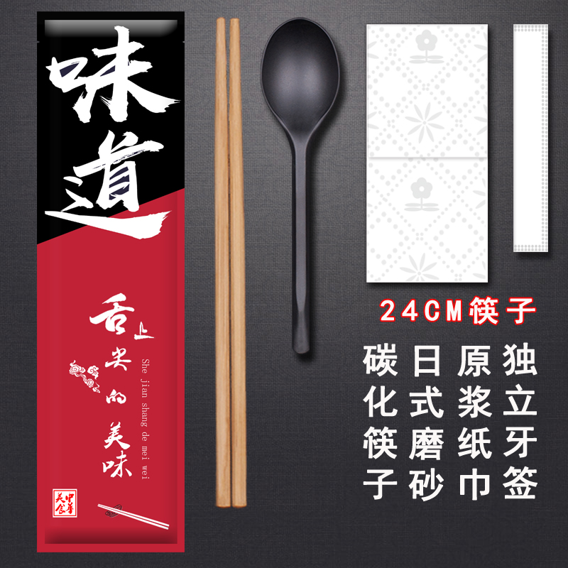 Disposable chopsticks commercial three-four-piece set delivery tableware four-in-one high-end fast food custom long hot pot chopsticks spoon