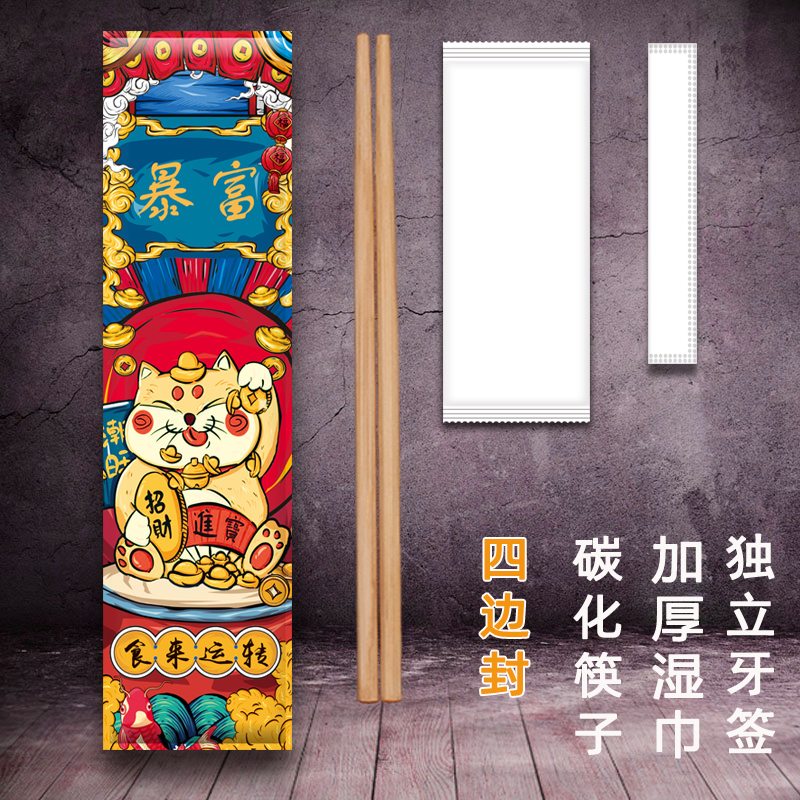 Rich cat four-sided seal (Japanese spoon) 150 sets Rich cat four-sided seal (Korean spoon) 150 sets Rich cat four-sided seal (wet wipes) 150 sets Rich cat (blue and white chopsticks) Japanese spoon 150 sets