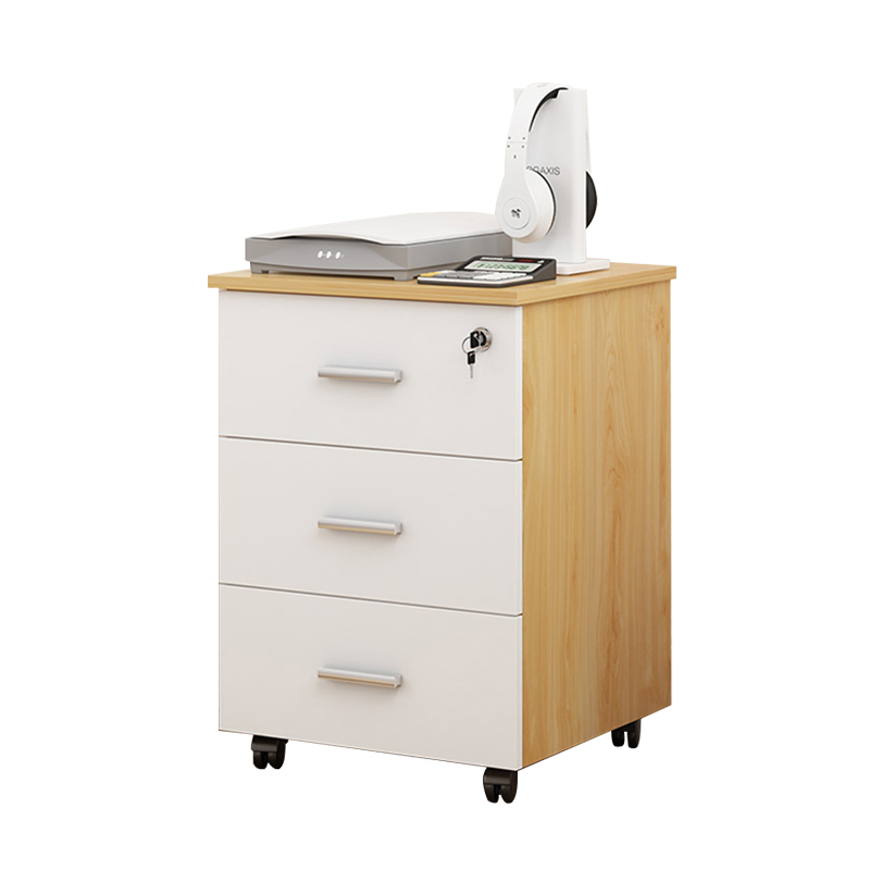 Staff desk table movable side cabinet drag drawer cabinet with lock plate file data storage cabinet three layers
