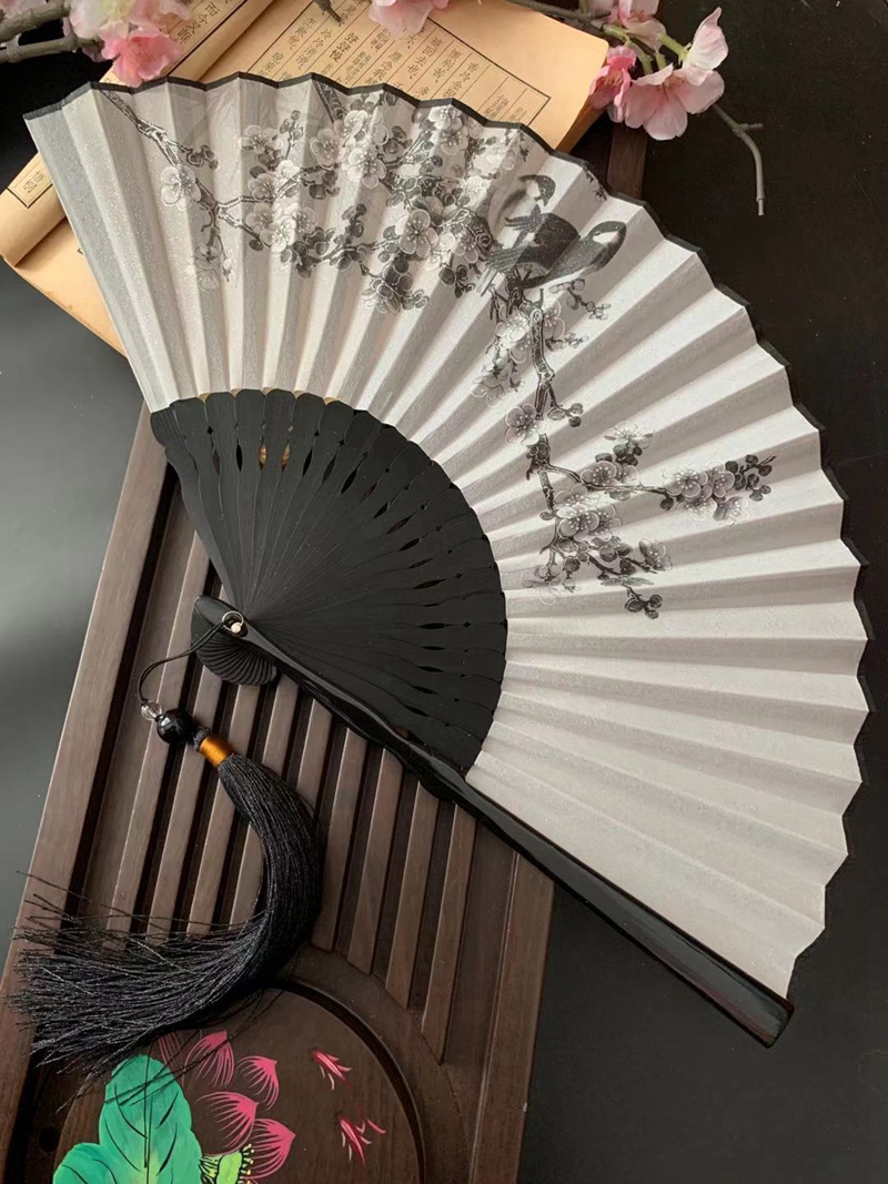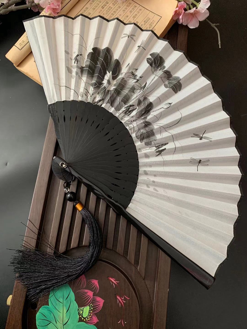 Chinoiserie 7 inch fan folding fan ancient style portable summer ancient Hanfu male and female head green bamboo ink painting process folding fan