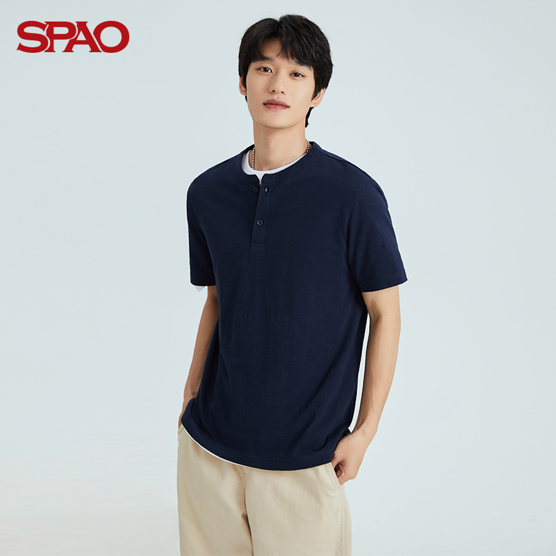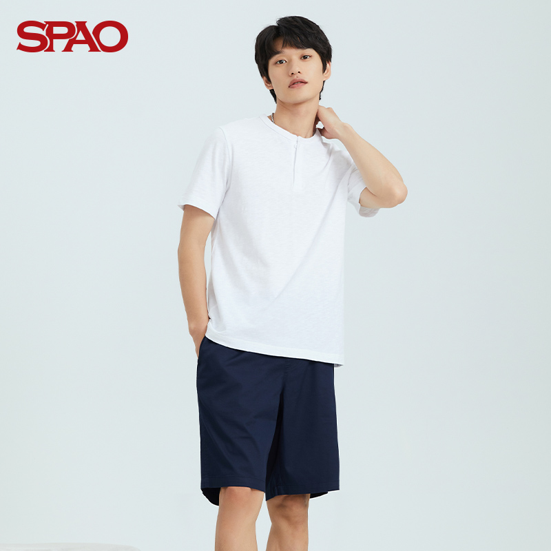 SPAO men's T-shirt 2021 autumn new fashion simple pure color breathable round neck short sleeve SPRAB25H26