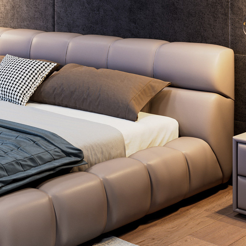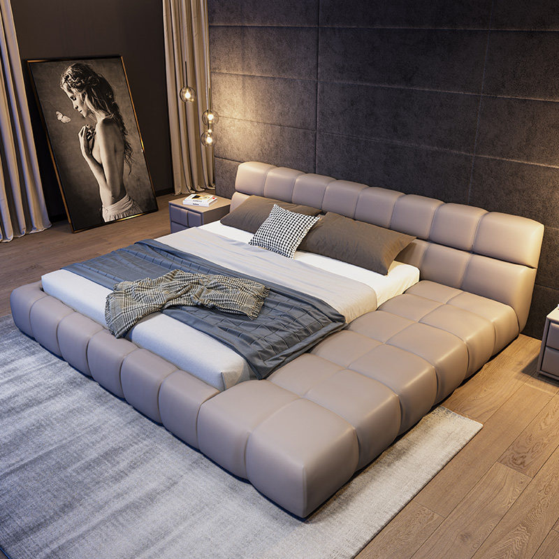 Italian-style minimalist leather bed light luxury modern minimalist soft-packed bed master bedroom double bed Japanese-style tatami floor-to-ceiling bed