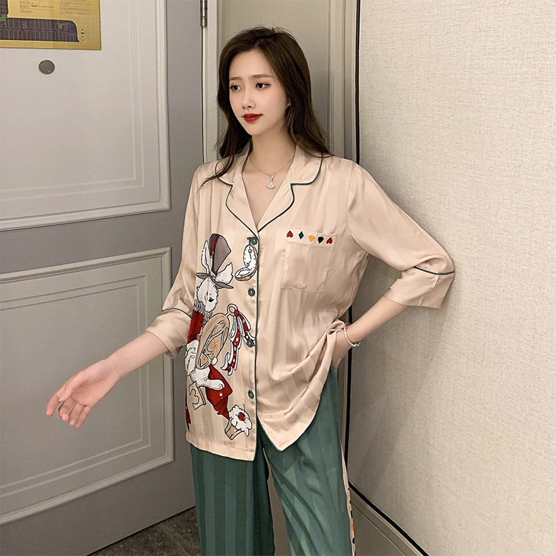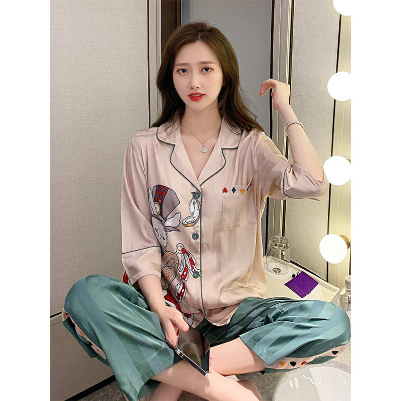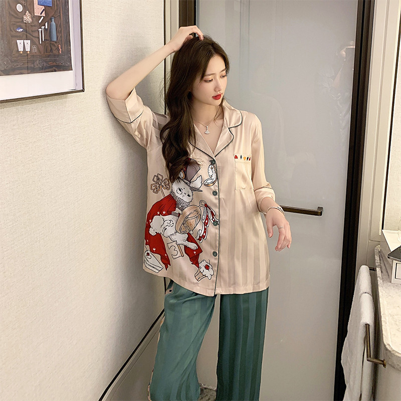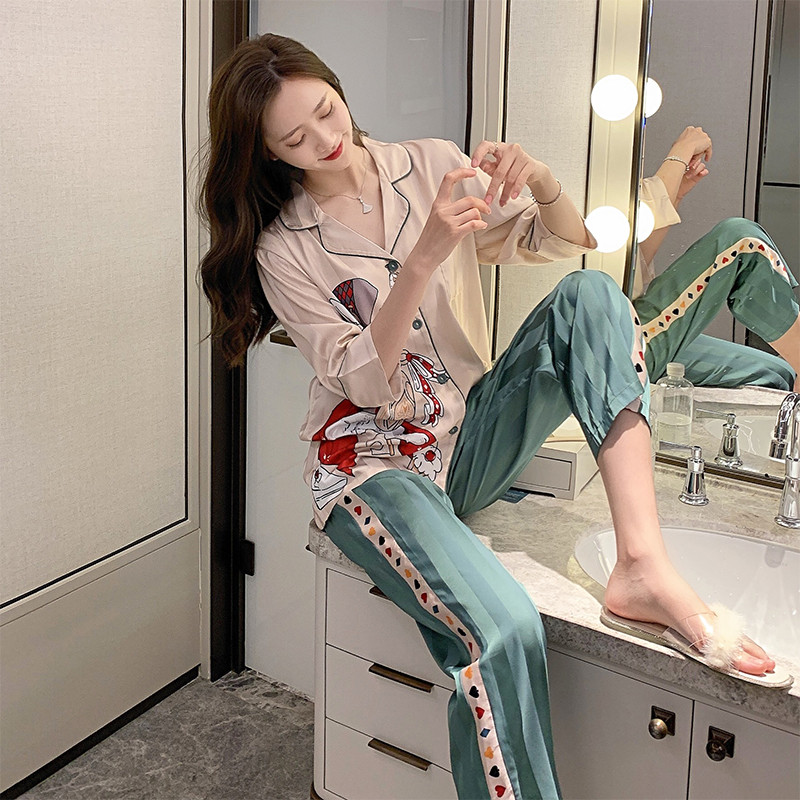 You are the female Lord Dailly Gtra ~ Sleeping Girl Spring and Autumn Ice Thin Graffiti Printed Home Suit Suit