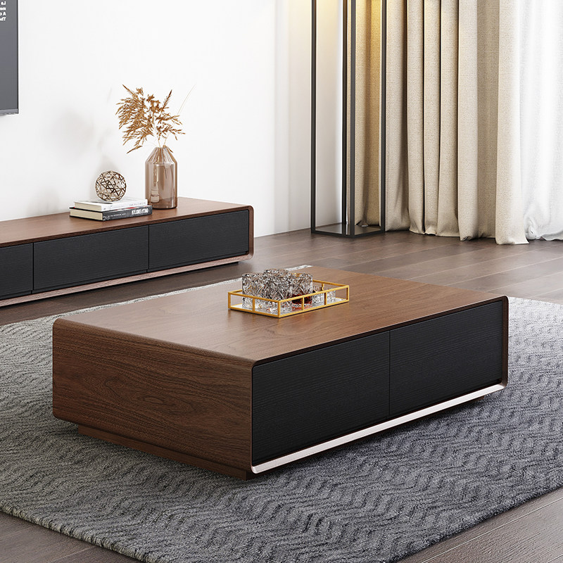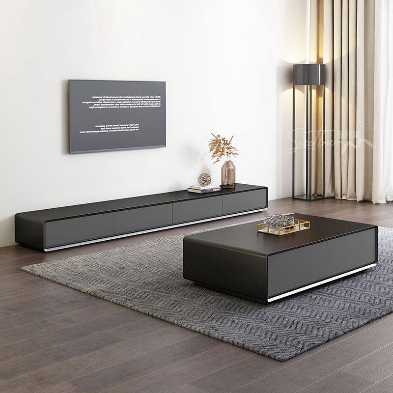 Modern minimalist coffee table TV cabinet combination Nordic living room rectangular black size storage creative tea table - Taobao