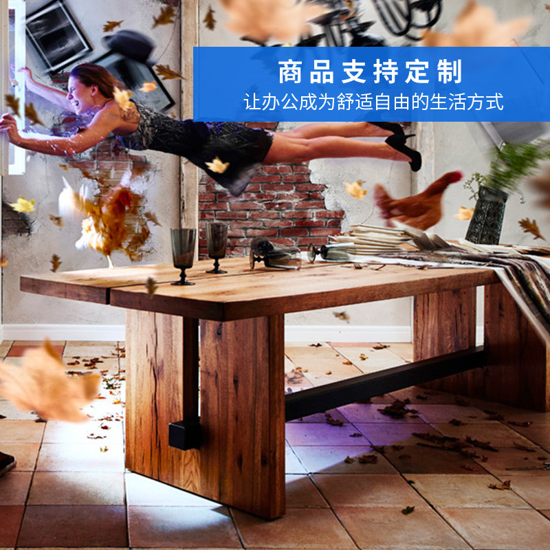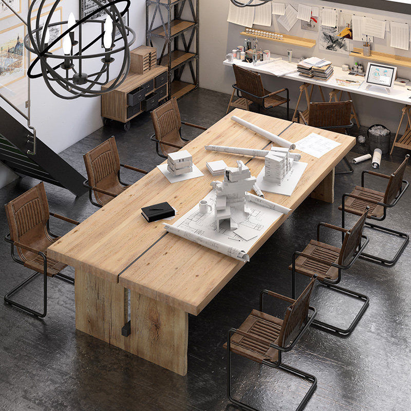 American industrial style desk solid wood conference table long table simple modern workbench table negotiation table and chair combination - Taobao