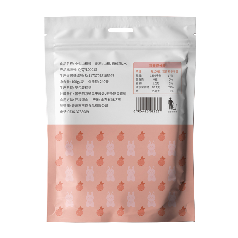 Yuliang rabbit hawthorn lollipop 100gx1 bag additive-free baby healthy leisure snacks coax baby small package