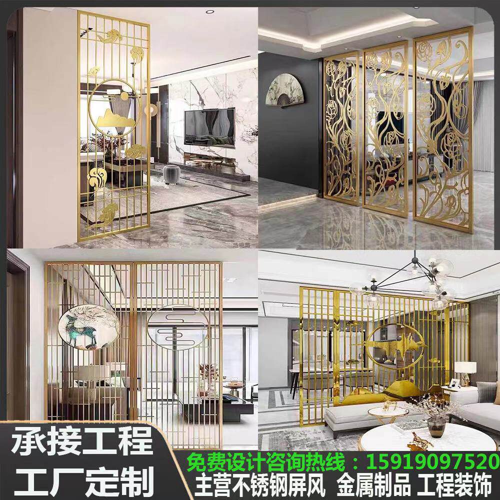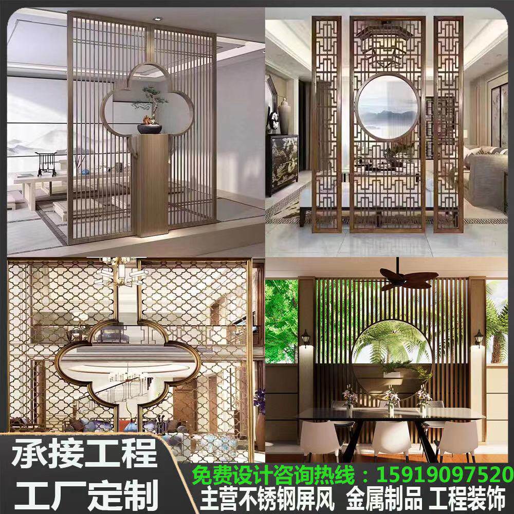 Stainless steel screen partition simple modern new Chinese european metal carving laser skeleton rockery light luxury customization