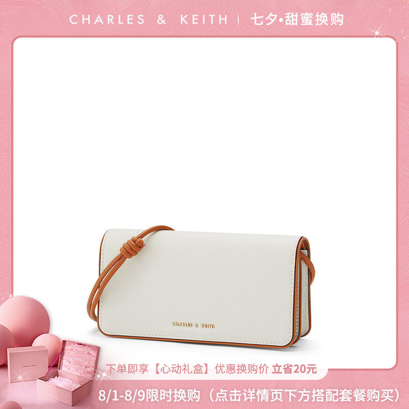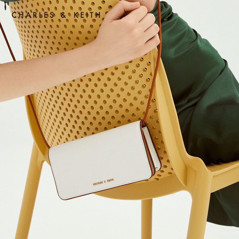 CHARLES & KEITH solid color simple CK6-10770502 DRAGON fruit color messenger small square wallet WOMEN