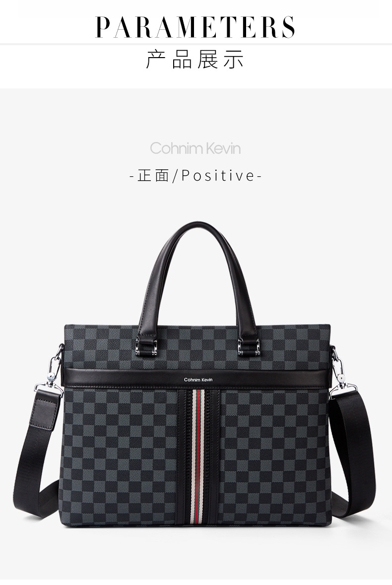 New fashion British style single shoulder bag men business handbag large capacity hand with grid European and American fashion cow skin