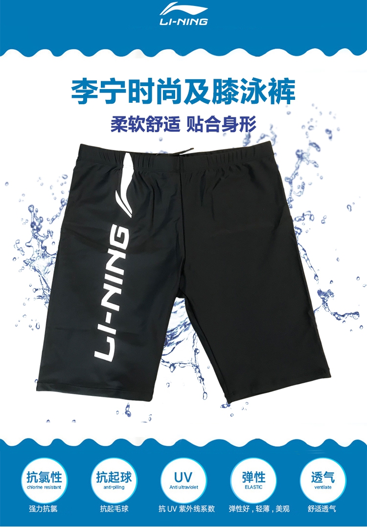 Li Ning Swimming equipment Anti-Chlorine Four Trousers Men 50% Speed Dry Comfort Fashion Bubble Spa Professional Pure Color Anti Embarrassment