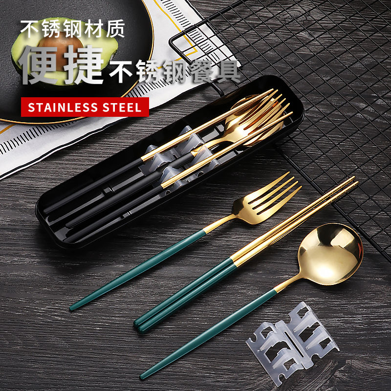Nordic ins Golden green spoon chopstick box Nordic ins Golden green spoon fork chopstick box Nordic ins Golden green portable box (without cutlery)Nordic ins Golden red spoon