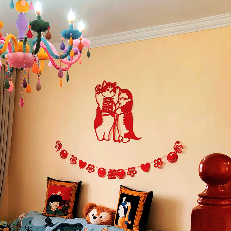 Canine Little Tsukuba Kittens New House Wedding Living Room Wedding room Wedding House Decoration Arrangement Original Personality happy words Wedding House Arrangement