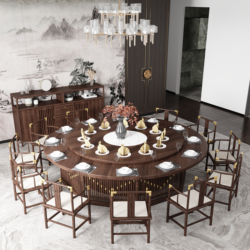 New Chinese-style hotel dining table large round table 10 people 15 people 20 people clubhouse box solid wood electric rotating plate hot pot table