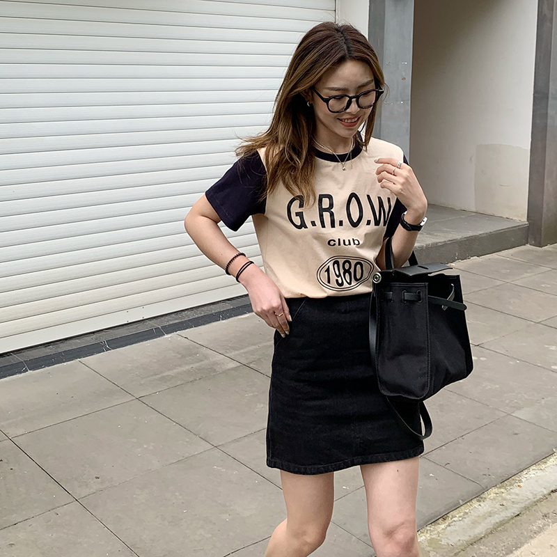 Small Pull 1937 Collision Color English Minimalist Street Wind Pure Cotton T-shirt Short Sleeve Summer Women Design Sensation