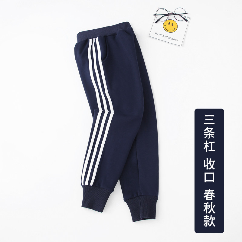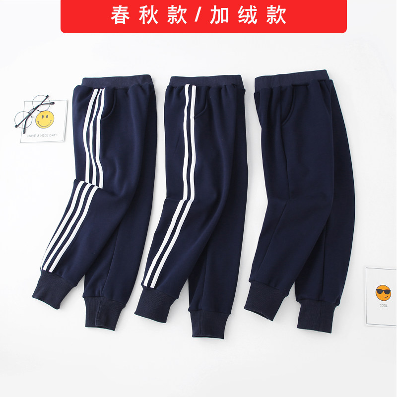 Pure Cotton School Uniform Pants for male and female students Two bars Hide Cyan Spring Autumn Sports Double Bar White Side Small School Pants
