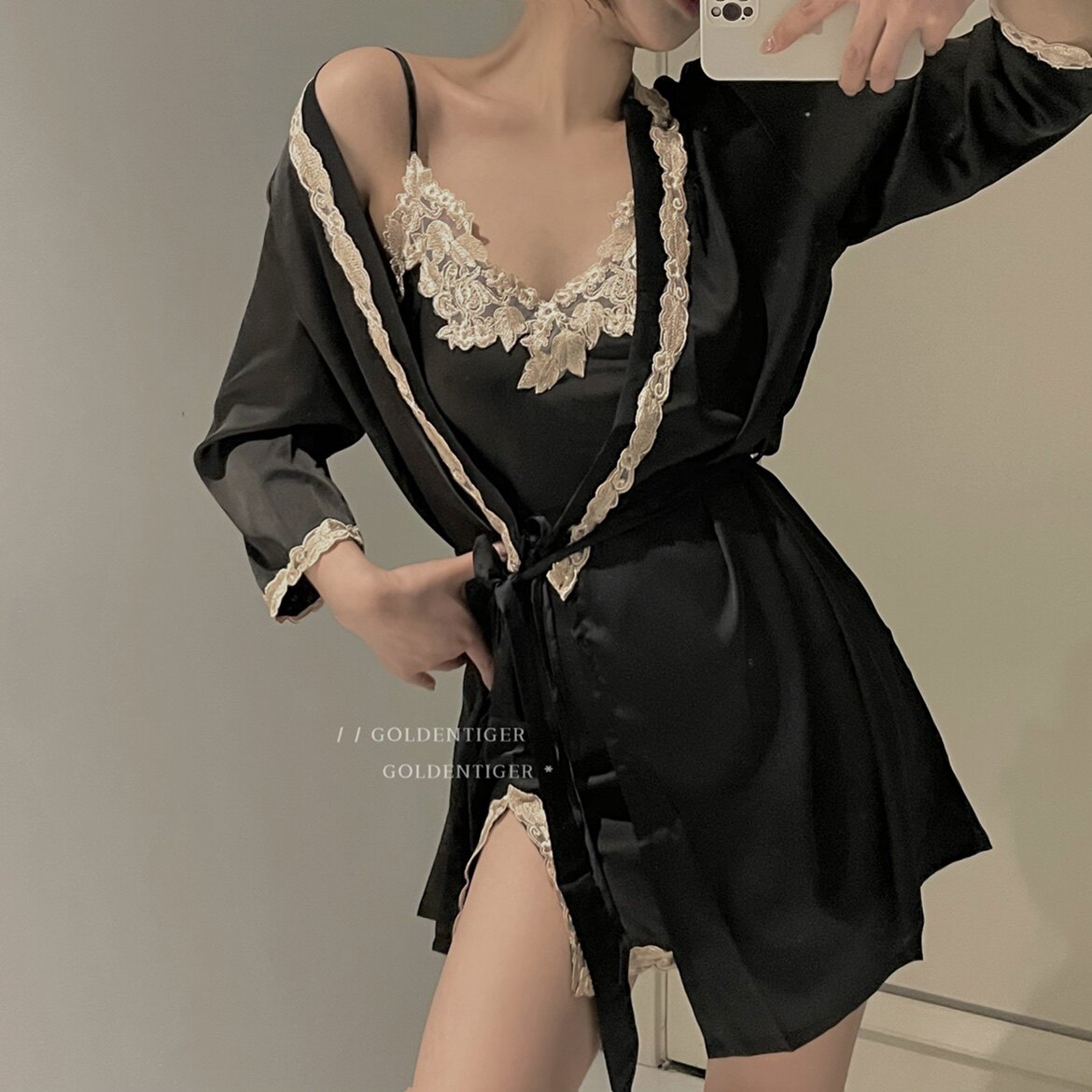 GT / Dark Moon Goddess Embroidery Sexy fork simulation silk dress sweater lace tempts two sets of sleeping robes