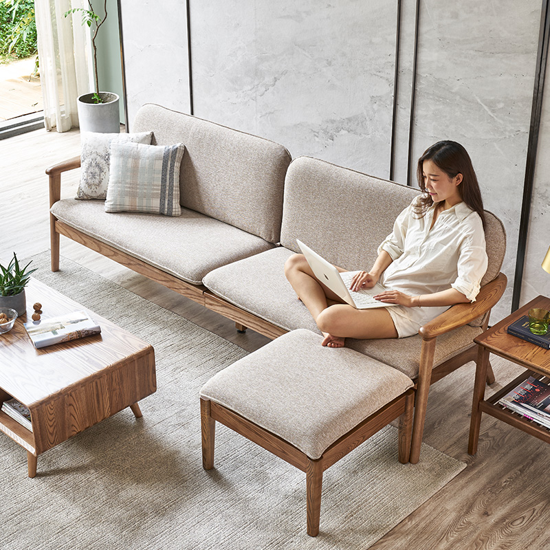 Nordic solid wood sofa imported ash full log pedal living room small apartment walnut color winter and summer sofa