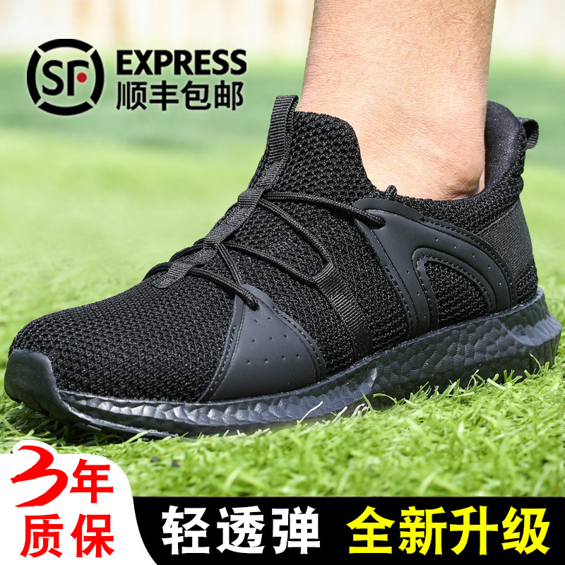 New combat training shoes men's summer physical training shoes ultra-light black sneakers breathable mesh fire training running shoes