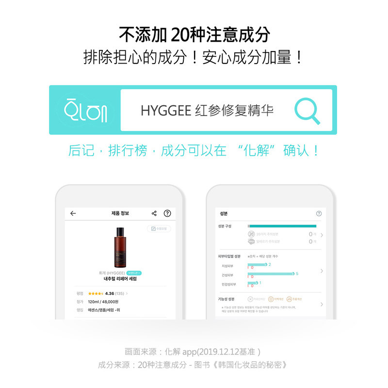 South Korea HYGGEE red ginseng essence to facial muscle bottom liquid to remove yellow, brighten, hydrate, anti-aging, anti-wrinkling and compact repair